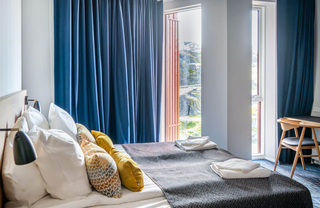 The newly built wing of Hotel SØMA Sisimiut is open! This means that you can look forward to arriving to a modern reception and lounge area. Lounge offers fantastic panoramic views over the bay and is perfect for northern lights watching during the winter.